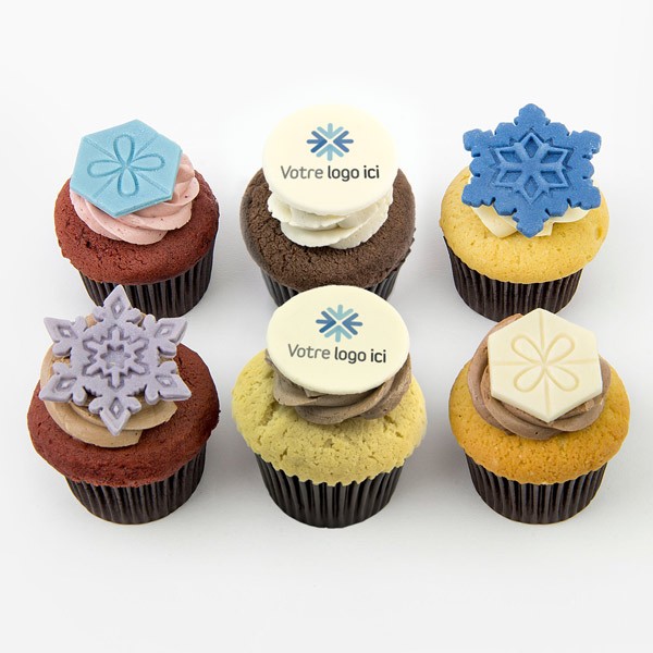 For a corporate event, corporate gift or an employee party, my delicious Christmas-themed marshmallow fondant decorated pure butter cupcakes will leave your customers and employees mouth agape! For maximum effet, choose a mix of Christmas-themes pastilles with your logo!