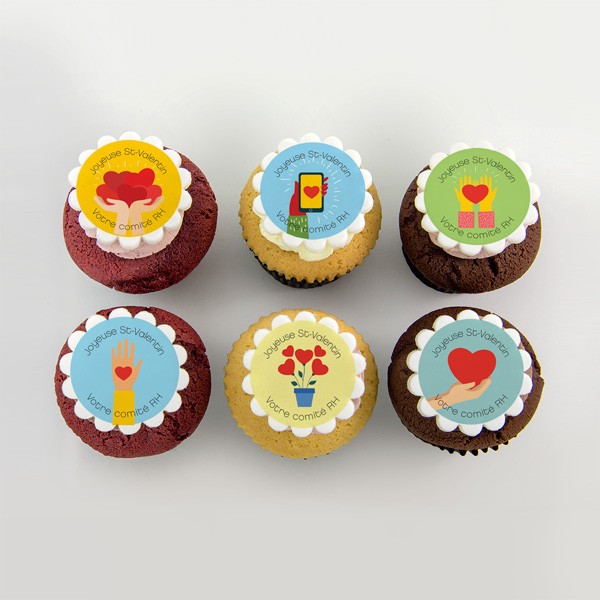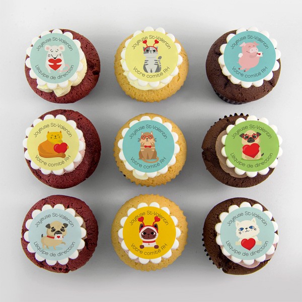 Pour la St-Valentin, quoi de plus festif pour offrir à vos employé-e-s que mes cupcakes pur beurre décorés de message de Joyeuse St-Valentin avec de mignonnes images thématiques! N'hésitez pas à me contacter pour une soumission et un visuel personnalisé!