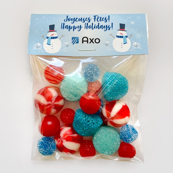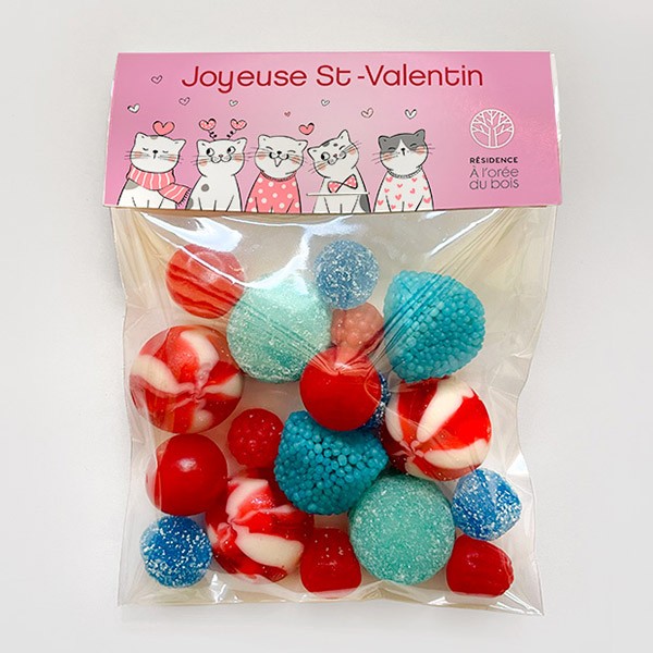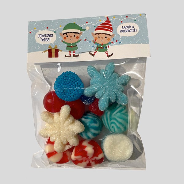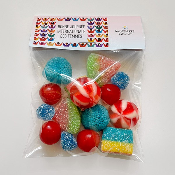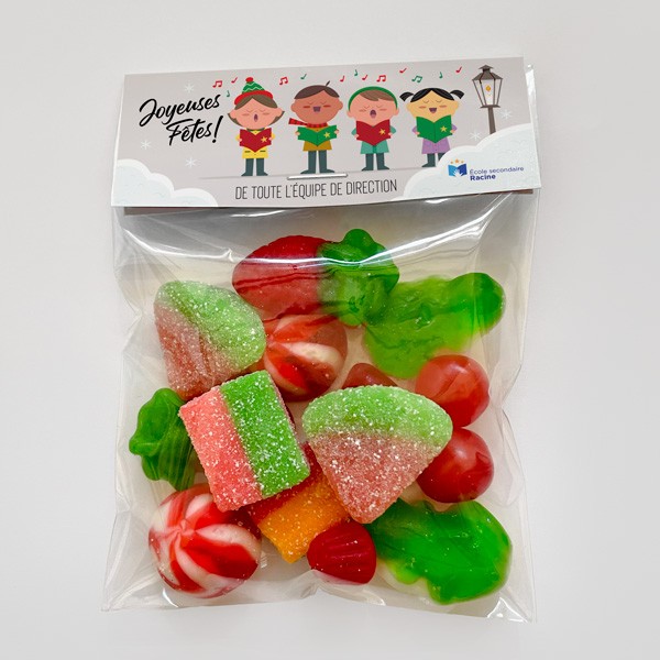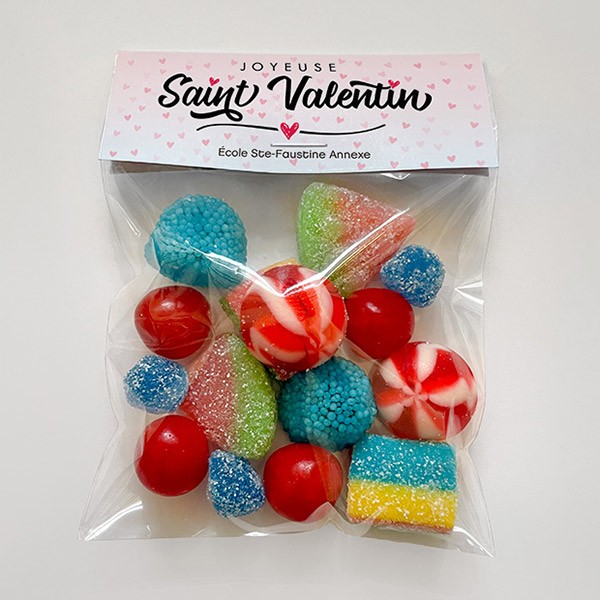 Ce sachet de bonbons avec une étiquette personnalisée vous permet d'adresser votre message d'une façon délicieuse et colorée! Sans gluten, sans noix ni arachides et sans produits laitiers.