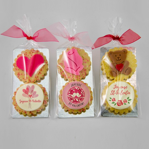 Le duo de sablés de la St-Valentin – Duo de sablé à la vanille décoré de notre pâte à la guimauve, une recette maison exclusive. Aussi beau que savoureux, ce cadeau gourmet apportera magie, plaisir et émerveillement à son destinataire.