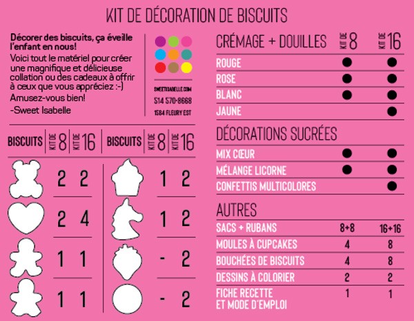 kit de 16 biscuits: 69$