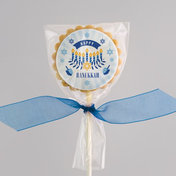 Ces délicieux sablés dentelés sur bâton, arborants des souhaits de Joyeux Hanouka en impression comestible sur pâte de guimauve sont parfaits pour offrir à tous les fins gourmets. Idéal pour mettre sur un cadeau emballé, ou sur votre table de dessert!